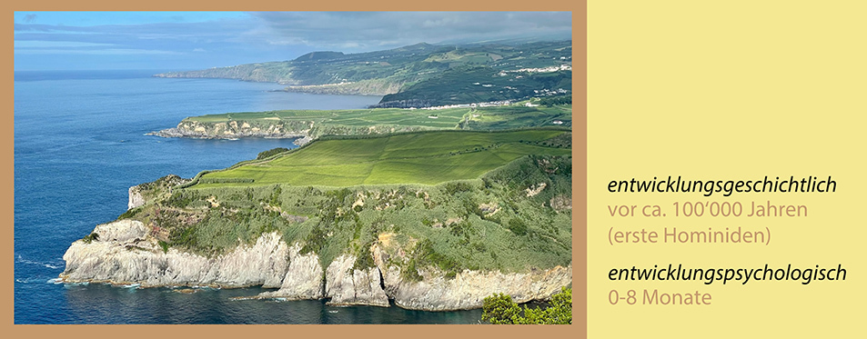Zu Beginn des Lebens, noch gänzlich unbewusst und noch ohne ausgeprägte Individualität, also quasi «im paradiesischen Zustand[1]», lebt der Mensch mit grossen, offenen Augen ganz im Augenblick, im Sein, im Netz des Lebens[2], in der Einheit und in einer natürlichen, symbiotischen Verbundenheit und Geborgenheit.